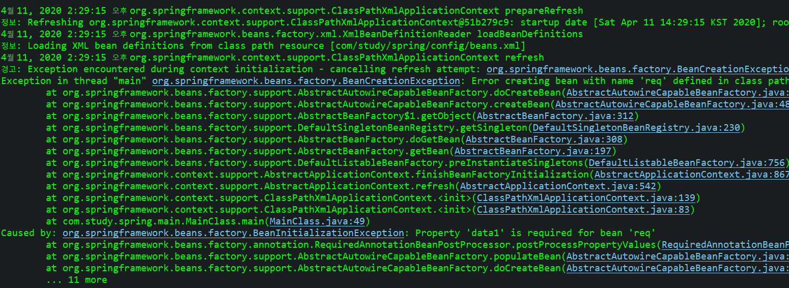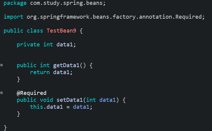 TestBean9클래스의 setter에 다음과 같이 @Required어노테이션을 추가해 준 후 컴파일,실행 해보면