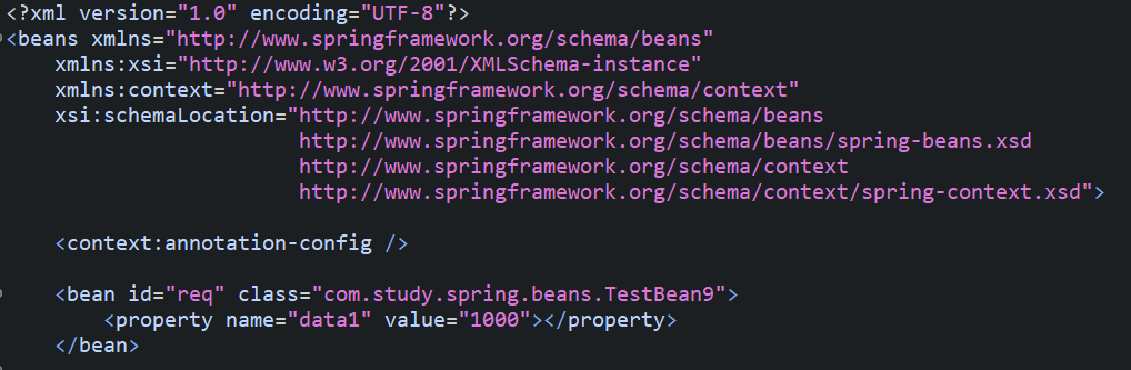 xmls:context 속성을 추가해야하고, xsi:schemaLocation속성에 context를 추가해야 하며