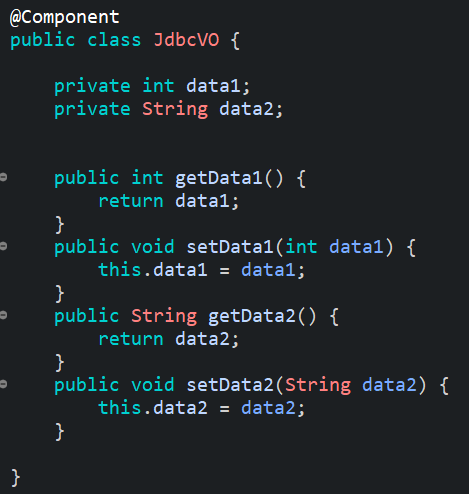그리고 위의 데이터 타입과 똑같은 데이터를 자바에서도 활용하기 위해서 VO클래스도 만들어주었고, 빈으로 등록했다.