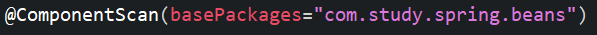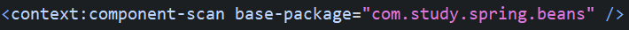 자바 빈 설정파일과 xml의 컴포넌트 스캔 등록방법은 다음과 같다. bean객체가 있는 패키지를 등록해주면 된다.