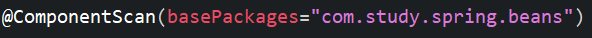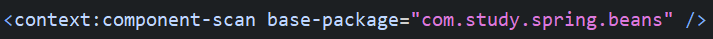 자바 빈 설정파일과 xml의 컴포넌트 스캔 등록방법은 다음과 같다. bean객체가 있는 패키지를 등록해주면 된다.