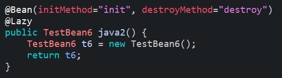 TestBean6 클래스에 다음과 같이 init이라는 메소드와 destroy라는 메소드를 정의하였다.