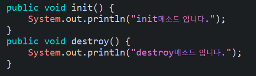 intit-method="init메소드" 이나 destroy-method="destroy메소드" 를 사용하였다. java도 비슷하다.