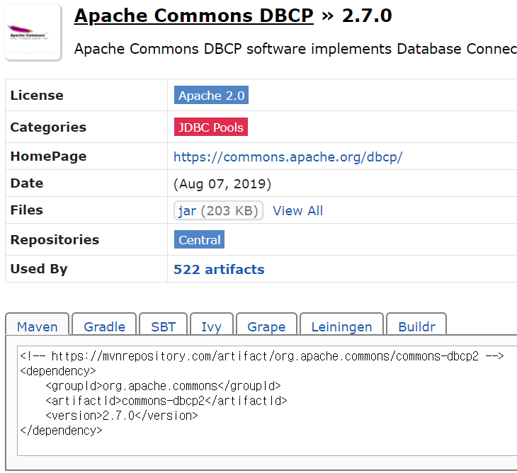 mvnrepository에 MyBatis라고 검색하면 이렇게 두가지가 나온다.
