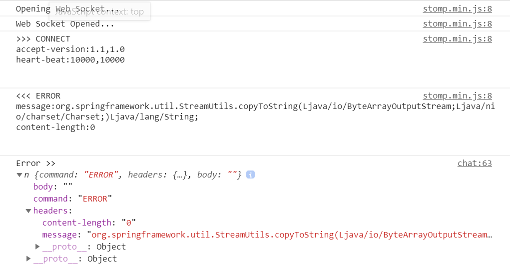 | STOMP 에러 message:org.springframework.util.StreamUtils.copyToString(Ljava/io/ByteArrayOutputStream;Ljava/nio/charset/Charset;)Ljava/lang/String; (0) | 2020.06.29 |